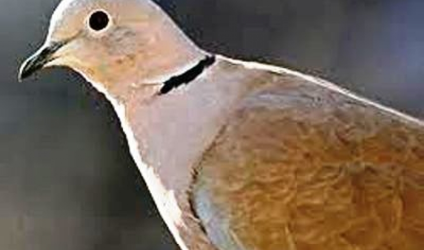 Légende : La tourterelle provient de l’Asie mineure, son cou est décoré d’un collier noir, elle mesure plus ou moins 40 cm.