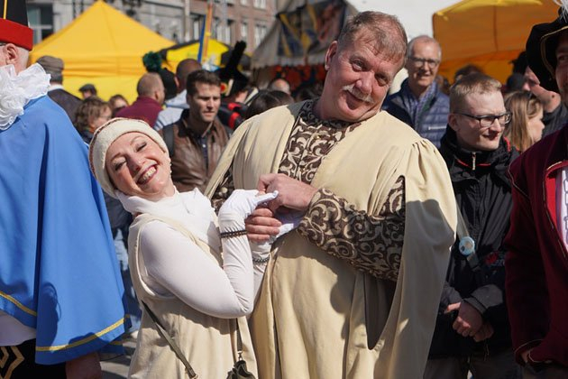 De 10h00 à 10h45, nous pourrons applaudir « Goliath » – déjà présent à Namur, en 1458 –, sa famille de Géants namurois & ses « Chevaux Godin », précédant Don Juan d’Autriche, la Reine Margot, Blanche de Namur & Magnus IV Eriksson, suivis des danses traditionnelles (arèdjes, quadrilles, matelottes, mazurkas, passe-pieds, polkas, troikas & valses) de la « Frairie royale des Masuis & Cotelis jambois », fondée en 1960.