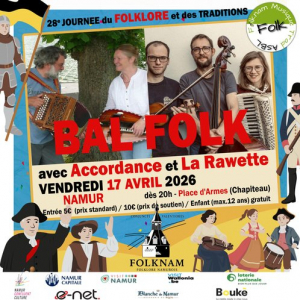 Organisée par une asbl fêtant ses 30 ans, « FolkNam », pour sa 28e édition, les « Journées du Folklore & des Traditions » fera vibrer la Ville de Namur au rythme de son histoire et de ses racines. Pendant deux jours, grand cortège, marché artisanal & village historique, ainsi que le retour attendu du bal folk nocturne, animeront les rues, ainsi que les places d’Armes & Maurice Servais, avec costumes d’époques, danses & musiques. A cette occasion, entre reconstitutions fidèles et interprétations créatives, le folklore namurois se révèle riche, vivant & accessible à tous.