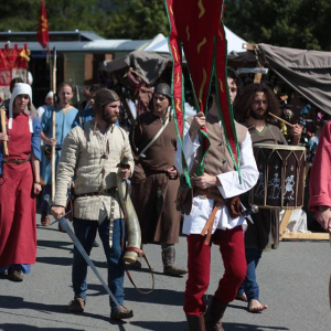 – de 14h15 à 16h15 : des démonstrations d’escrime, telles qu’au XIIIe siècle (« Compagnie du Furet ») ; une présentation de copies d’armes et d’armures du XVe siècle (« Compagnie Franche ») ; & la présence de l’école du soldat du XVIIIe siècle (« Bataillon des Canaris »).