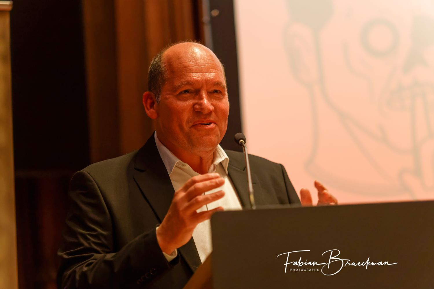 Philippe Close, lors de la conférence de presse du « BIFFF » © Photo : Fabian Braeckman/2025