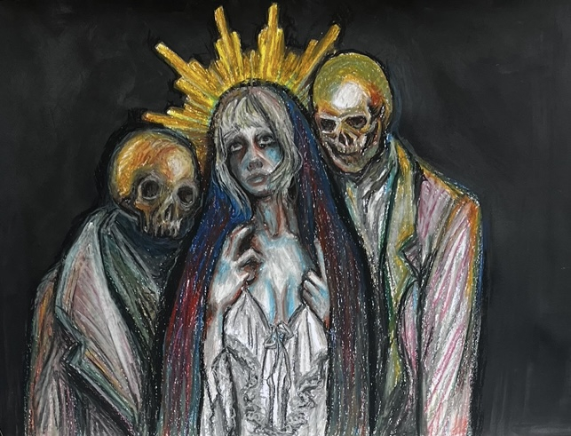 « Macabre », par « LiL4 », des oeuvres du lino au textile, en passant par les peintures d’une jeune artiste fascinée par l’art macabre du Moyen-Âge, les cabinets de curiosités et plus généralement le sentiment de curiosité morbide.
