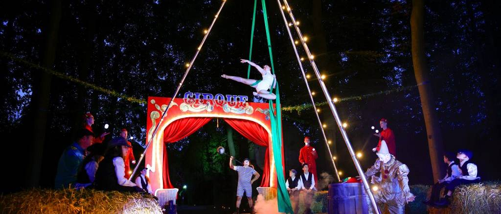 Voyageons parmi les décors les plus fantasmagoriques et avec l’aide d’une centaine d’artistes : comédiens, acrobates, jongleurs de feu et danseurs, défions la Reine de Cœur en son Château de cartes !