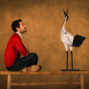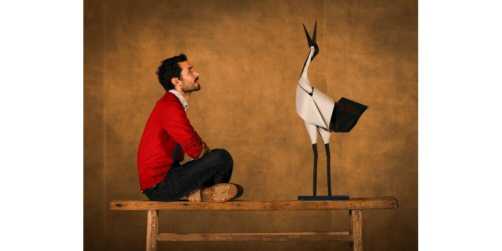 Ayant voyagé en Espagne, au Maroc &, avec un voilier, en Martinique, l’artiste français Jonathan Rebouillat rencontra une passionnée d’origami, qui l’inspira profondément. Après avoir vécu un an en Equateur, au cœur d’une tribu Kichwa, il commença, à l’âge 25 ans, à créer ses premiers origamis, son approche minimaliste étant basée sur quelques plis essentiels, suggérant des attitudes et des mouvements, rendant hommage, avec délicatesse & poésie, à la beauté du monde naturel.