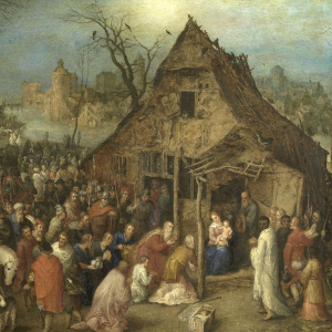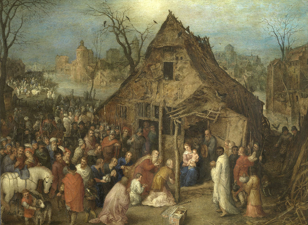 Dans « L’Adoration des Mages », héritier d’une dynastie de peintres initiée par son grand-père Pieter Coecke d’Alost (1502-1550) et portée au sommet par son père, Pieter Bruegel l’Ancien, Jan Brueghel l’Ancien joua avec des motifs tirés du répertoire de son père, qui décéda un an après sa naissance, ne pouvant donc lui offrir un apprentissage direct. Toutefois, malgré cet encombrant héritage, il traça sa propre voie et devient l’un des peintres les plus inventifs de son temps.