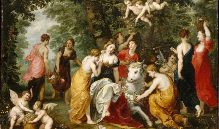 Les scènes mythologiques issues des textes d’Homère (VIIIe siècle avant notre ère) ou d’Ovide (48 avant notre ère-an 17 ou 18), sont l’occasion pour Jan Brueghel l’Ancien et Hendrick van Balen de montrer l’étendue de leur érudition, tout en flattant celle de leurs commanditaires. Au cœur des paradis verdoyants de Brueghel, les figures divines de Van Balen privilégient l’harmonie plutôt que le drame, relégué à l’arrière-plan et pourtant indissociable des mythes antiques. Van Balen trouve dans ces sujets l’occasion d’exprimer à merveille sa maîtrise du nu féminin. Quant à Brueghel, il ponctue ses paysages idylliques de fleurs, de fruits et d’animaux, témoignant de la multiplicité de son talent.