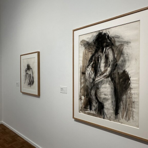 Si le dessin est toujours autonome, jamais préparatoire ou servant d’étude, il est complémentaire de la pratique de la peinture et s’en rapproche. Le mouvement du modèle, l’instabilité de la pose & la fugacité d’un geste sont retranscrits par des traits fluides, rapides, avec des jeux de contraste entre opacité et transparence, voire avec des traces du vécu, laissées visibles, de ses doigts ou de sa main.