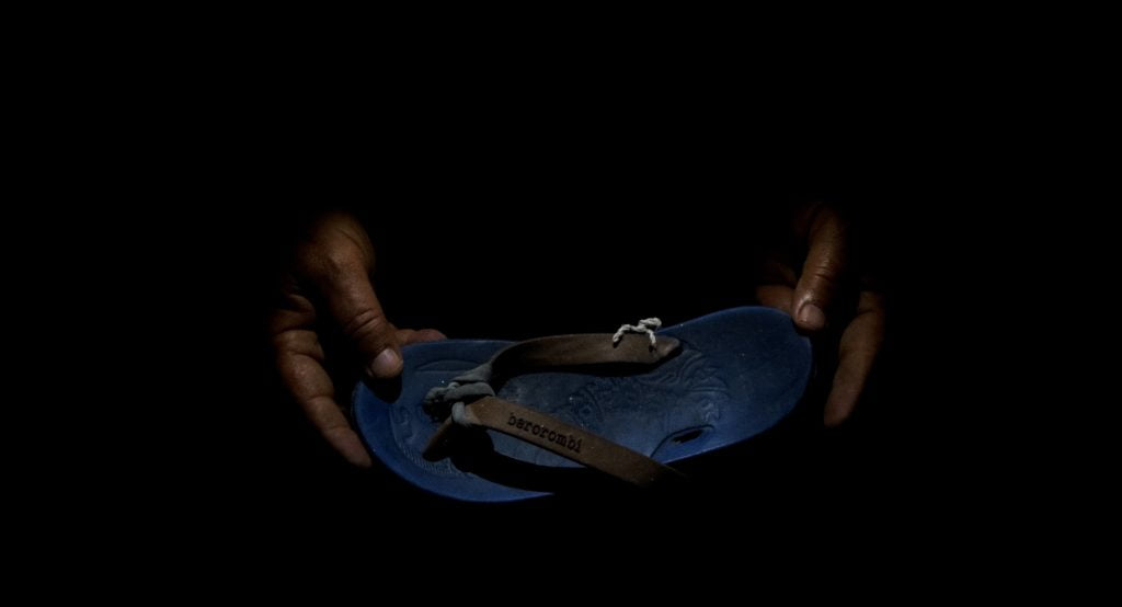 Dans l'un de ces boxes, entre un buste d’Hercule et un nain de jardin, sous divers emballages, nous distinguons des corps figés, ... une vision sombre ... mais n’abandonnant pas tout espoir, Fañch Le Bos ajoutant : « S’ils sont là, c’est parce qu’ils ne servent plus. Mais aussi, comme pour un vieux fauteuil ou une lampe ancienne, parce qu’on se dit que ça pourrait resservir un jour. »