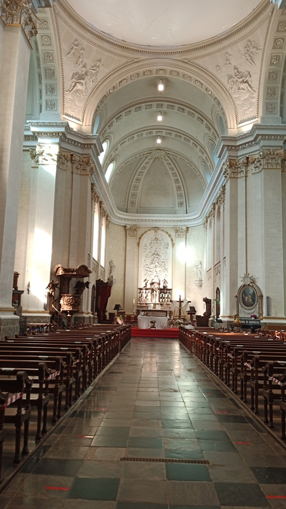 On part donc à la découverte des trésors, pas tous cachés de cette cathédrale, dédiée aux Saints-Pierre-Paul-et-Quirin. Plus exactement cette (grande) église, qui n'a été cathédrale que pendant 4 ans, de 1921 à 1925, dans l'éphémère diocèse d'Eupen-Malmedy. Ce majestueux édifice, point de repère pour tous Malmédiens et les passants, rassemble aussi ce qui fait le caractère de la région, à savoir "la résistance", nous confie le doyen Vital Nlandu Balenda, en poste depuis 7 ans et lui aussi tombé sous le charme de cette grande dame et de la mentalité dans la région. Alors que, hasard ou fait miraculeux, la cathédrale a été très largement épargnée lors des bombardements dévastateurs de décembre 44. On vous invite donc à une visite de cette cathédrale, de ses trésors et ses recoins cachés, généralement peu accessibles au grand public.
