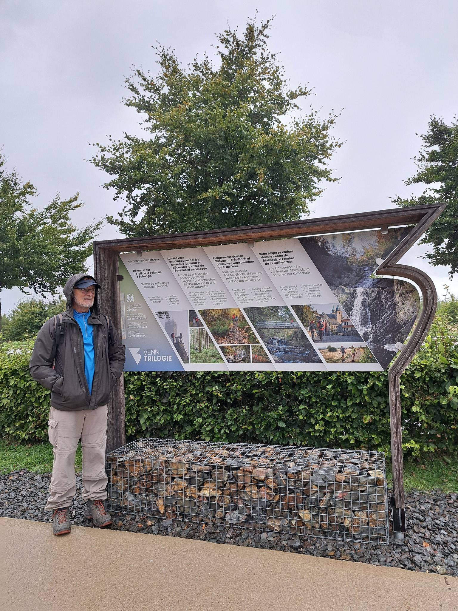 Il y a 10 jours déjà, je terminais ce petit périple et comme je croise des gens qui m'en parlent comme hier au « Batopin » où je prenais le peu d'argent qu'il me reste, une dame que je connais mais que je vois peu, m'accoste en me disant "bravo ..... " et moi de me dire " toujours aussi jolie ..." ( là je m'égare !! ). Après la 4ème étape, après 2 jours de repos, j'ai constaté que mes vieux accus avaient le même problème que ceux de mon smartphone, ils ne rechargent plus à fond. Je quitte mon village à pied en direction du départ ( + 4 km) en débutant par le « Calvaire », Cela commence fort et un panneau me rappelle qu'un jour, ce fut la mer à Malmedy . Je marche un jour avec une dame âgée de 10 ans de moins que moi qui me dit " tu feras sans problèmes les 2 étapes en une fois ". Et bien, non, ce ne fut pas facile , mais très heureux d'y arriver. Je me suis amusé à écrire cette petite bafouille voyant que j'étais lu à Kolgrogogo , Koudougou , Jonquières St Vincent, en Alsace , à Mons , à Bruxelles, dans les Vosges, en région parisienne, par mes anciens fournisseurs de bois, des clients que je n'ai jamais revus, par un chef d'école retraité qui vérifie les fautes et ma voisine de l'autre côté de la haie ( je vais pouvoir vérifier si elle lit tout le texte). J'espère que vous allez tous bien et surtout, prenez soin de vous, n'attendez pas demain.