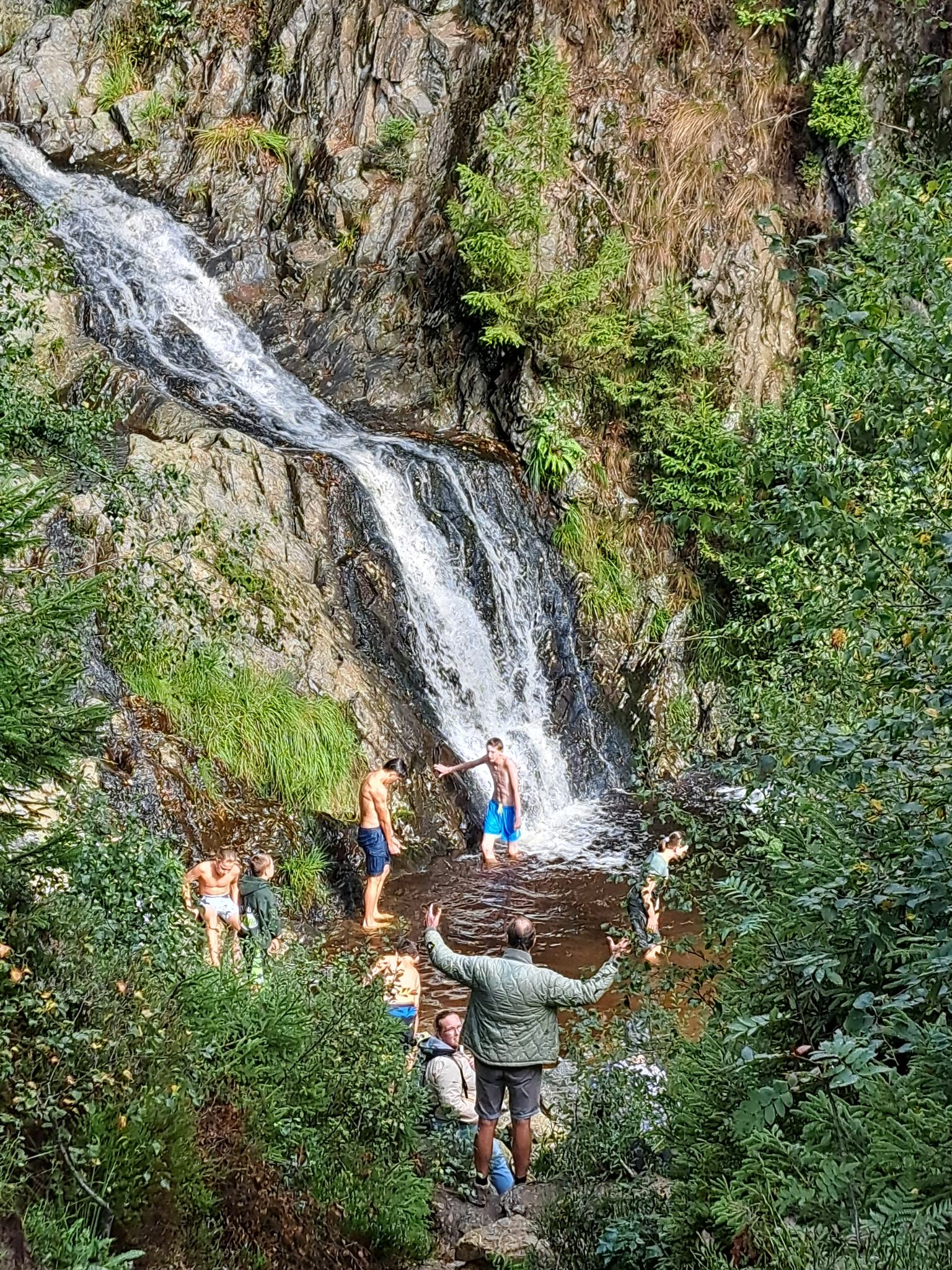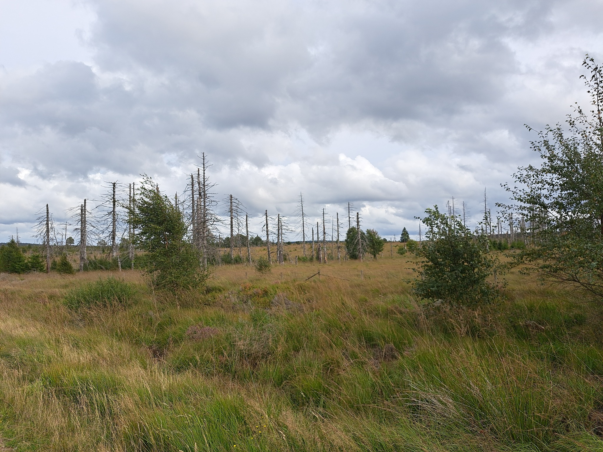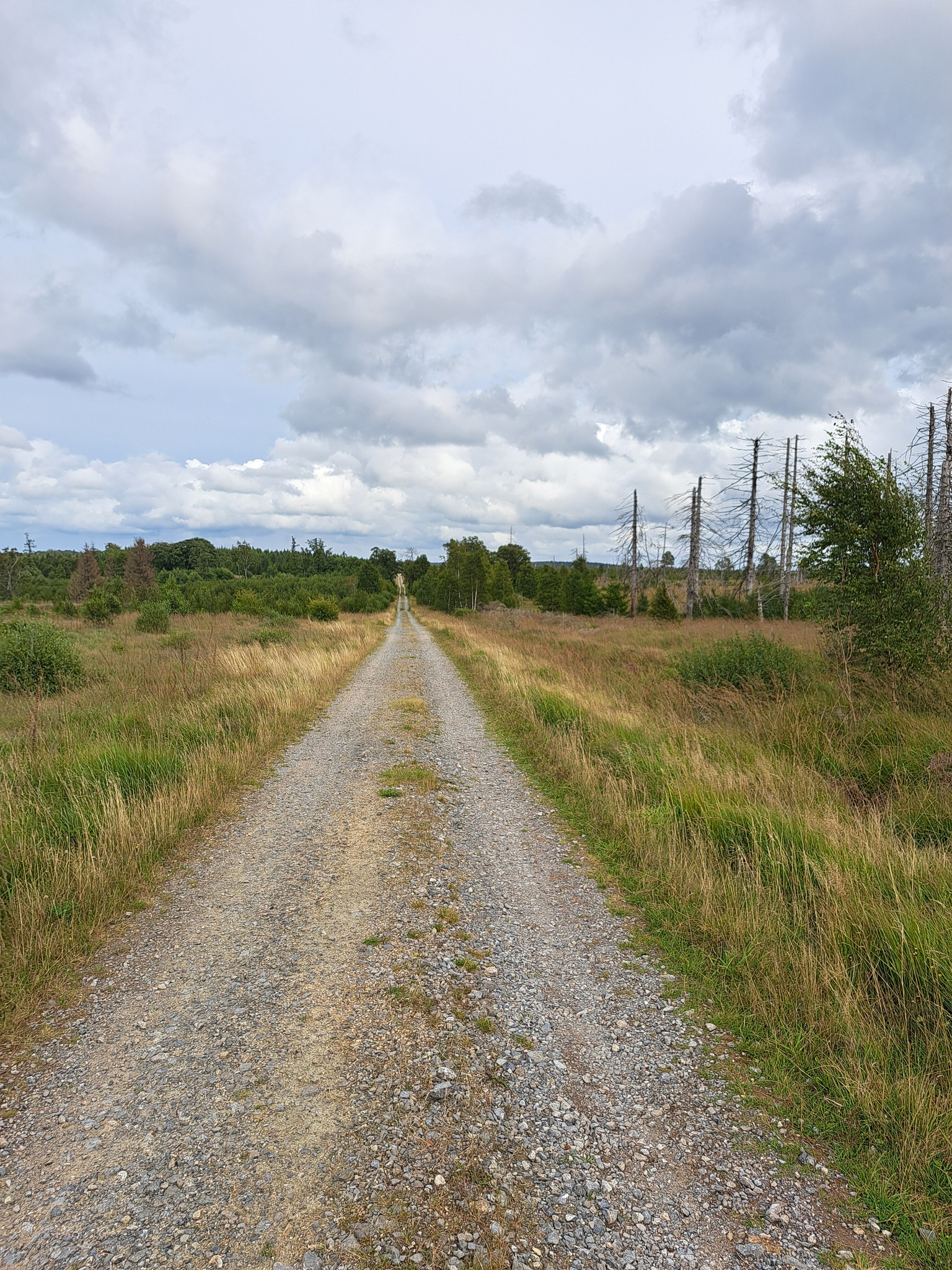 Toutes les difficultés ont été rassemblées pour ce parcours et quand j'ai reçu un coup de fil (d'une groupie) et vu enfin un chemin forestier en fagnes, j'ai avancé à grands pas mais le doute est rapidement arrivé par l’absence d'indications ; stupide ou borné, je n'ai pas encore la réponse. J'ai continué et c'est là que je me suis dit qu'il y aurait bien un coupe-feu à gauche qui m'amènerait vers Botrange, Heureusement, au bout de 45 min de marche, j'ai croisé un cycliste qui m'a dit que la seule bonne option était de faire demi-tour. " Voulez - vous que je vous prenne sur le vélo, on peut essayer " me propose, trop gentil, ce cycliste de Baelen. Mais je me suis remémoré la scène de Bourvil et De Funès et je suis reparti d'où je venais. Les 2 batteries de mon téléphone à plat, une ampoule à soigner, un détour de 11 km et suis arrivé à Botrange au bout de 36 km dans le même état que mes accus téléphoniques.