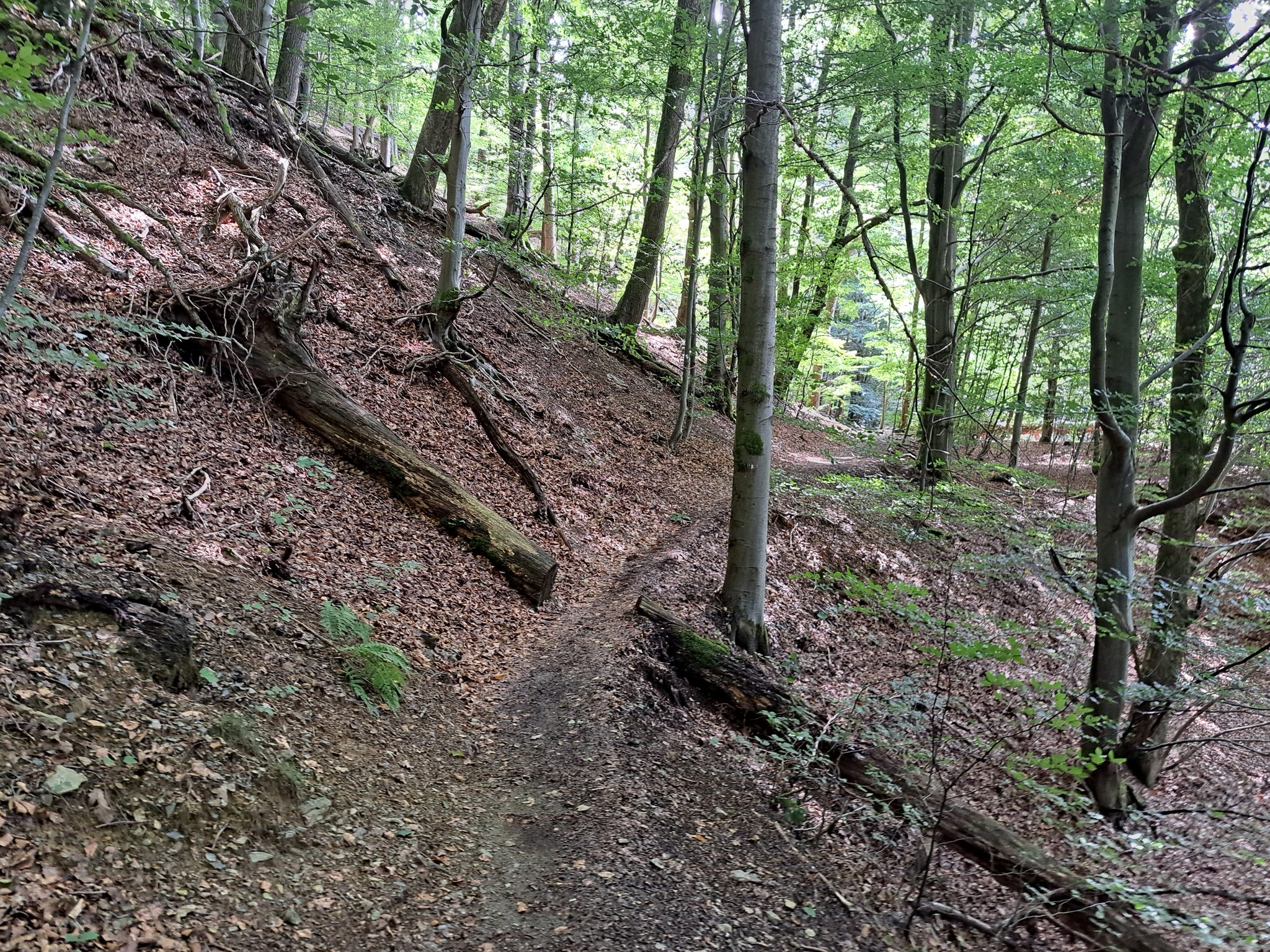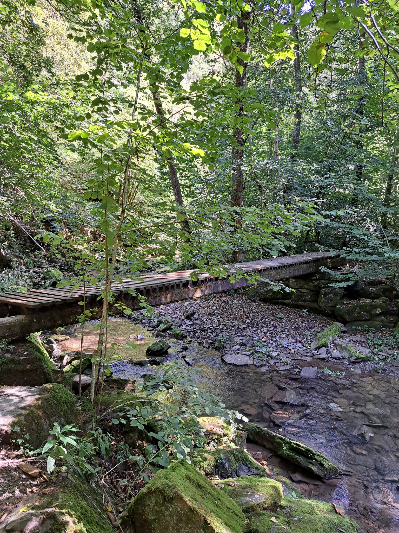 Sortir de la ville haute pour la ville basse, avec des détours qui montent et descendent et pleins de petites surprises puis entrée dans l'Hertogenwald en suivant la Helle ( die Hill ).