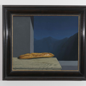 Concernant les titres qu’il donne à ses oeuvres, notons ce qu’il écrivit : « Un lien entre un objet et son nom n’a rien d’inattendu, remettant en question la certitude du langage », ainsi dans une de ces peintures il écrit « la lune », sous une chaussure ; le désert, sous un marteau ; le plafond, sous un chapeau boule, …