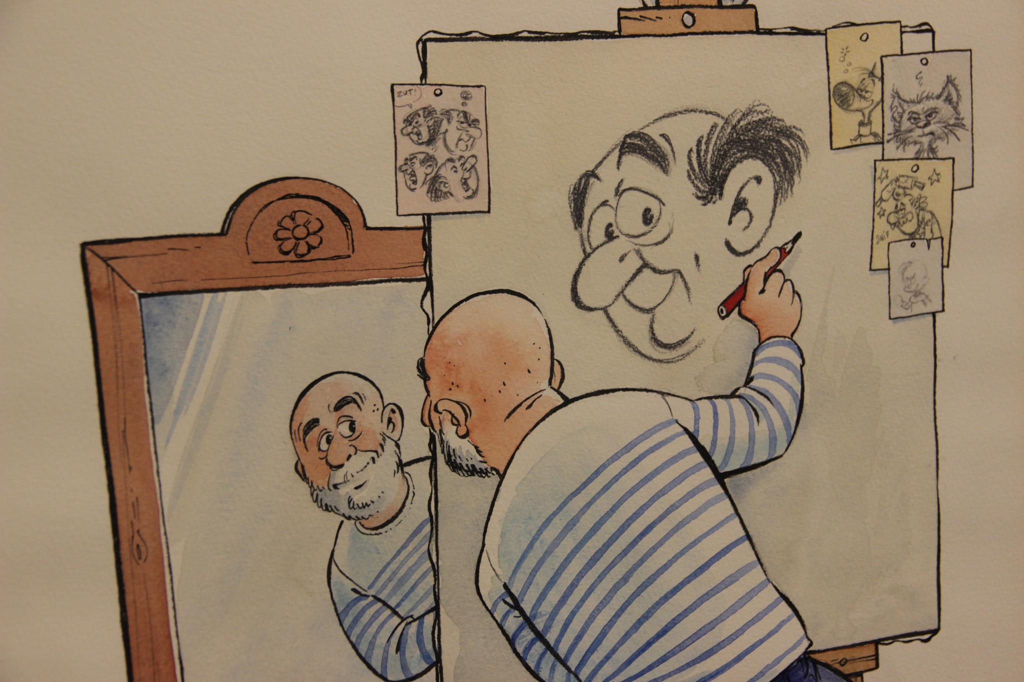 Mieux encore, alors que nous finissions la visite de presse, un employé du « MiLL » vint apporter au dessinateur louviérois une dessin qu’un facteur venait d’apporter au musée, cette volonté de répondre à la demande de leur collègue illustrant bien la solidarité existant entre les dessinateurs.