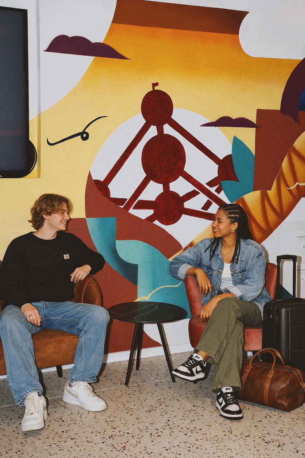 Chaque étage et chaque chambre racontent une histoire, entre couleurs, fresques murales, signalétique originale et éléments graphiques inspirés de la culture belge et bruxelloise. Une approche qui donne naissance à un hostel moderne et inspirant, ancré dans son époque.