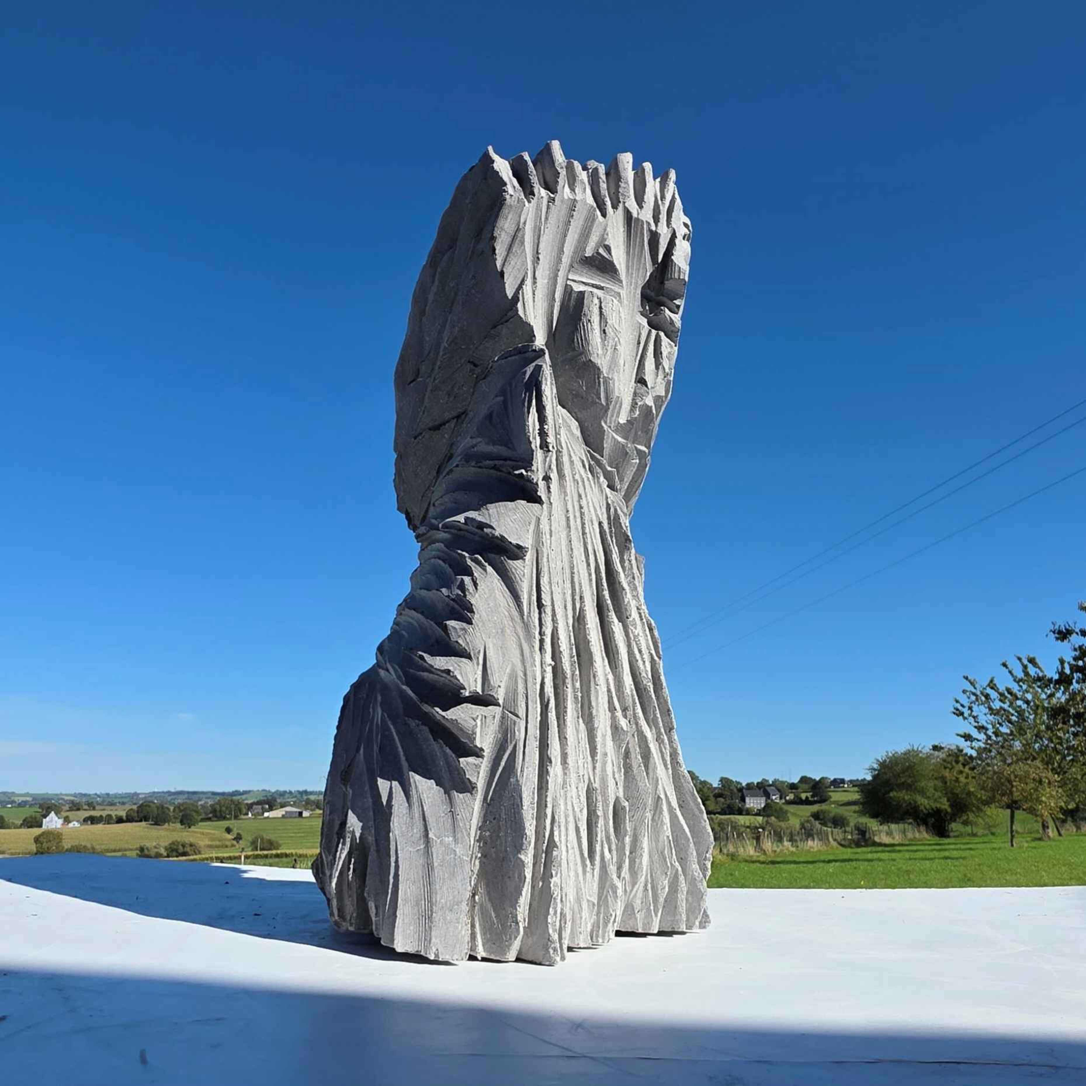 « Voici une exposition de sculptures tout bonnement exceptionnelle, fruit de trente années de dialogue de l'artiste Pierre-Éric BAIBAY avec la pierre bleue belge.
