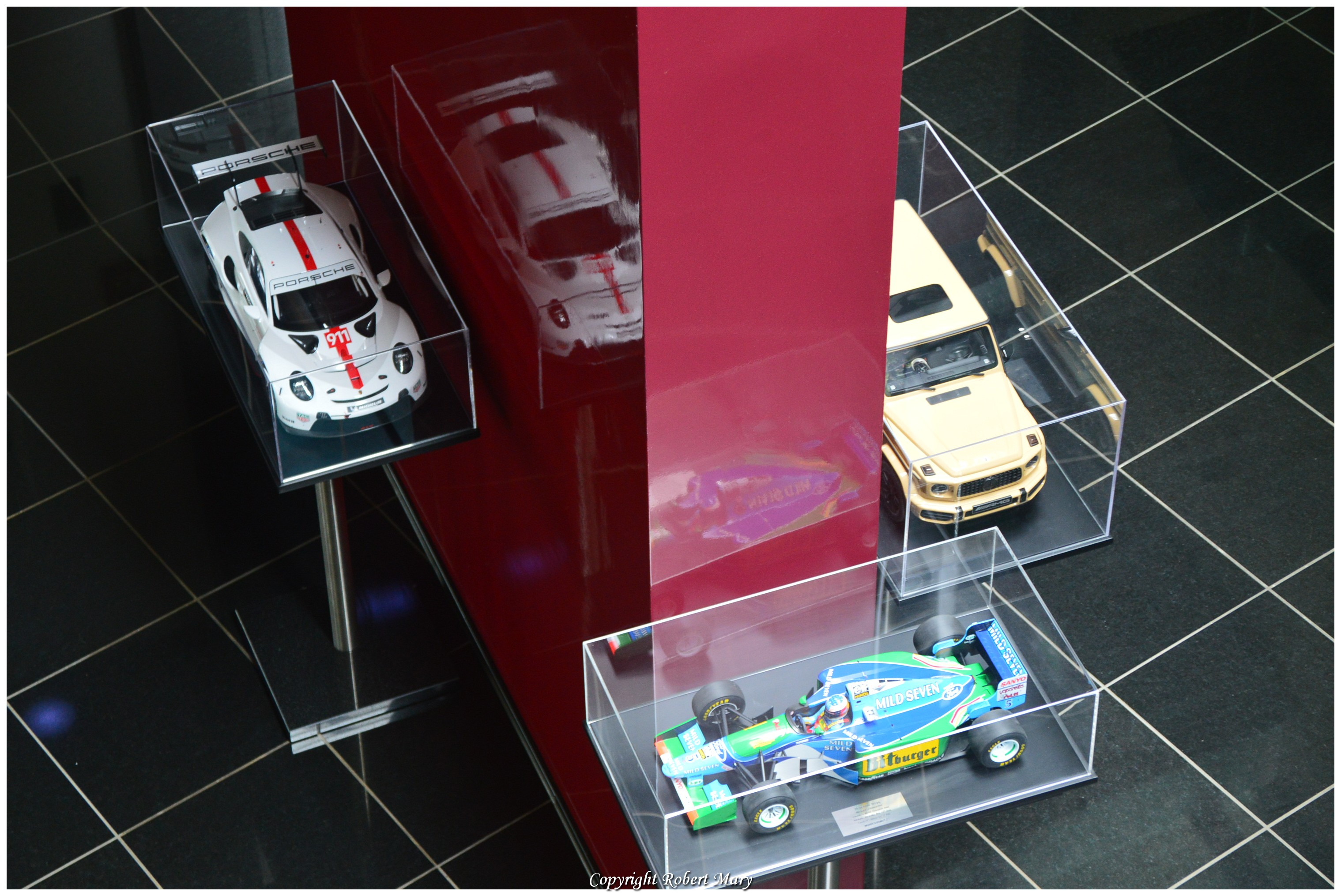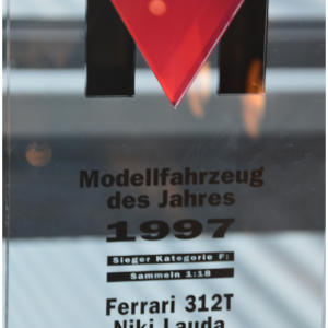 Le musée rappelle des moments agréables à l'éternel enfant que je suis même si le visiteur s'adresse d'abord aux collectionneurs. Les modèles sont bien exposés dans de nombreuses vitrines destinées à les mettre en valeur. Une vitrine est d'ailleur consacrée aux prix reçus par Minichamps de la part de magasines spécilisés en modèles réduits, ainsi Minichamps reçu en 1997 le prix du meilleur modèle réduit pour la Ferrari 312T de Niki Lauda.
