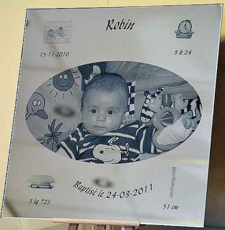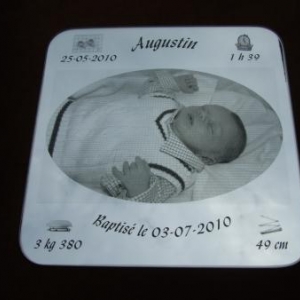 Miroir personnalisé gravure photo et texte naissance baptême anniversaire