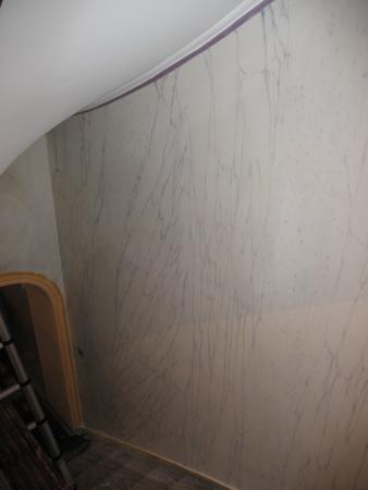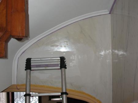 Rénovation d'une cage d'escalier en faux marbre (type blanc veiné) sur trois niveaux.