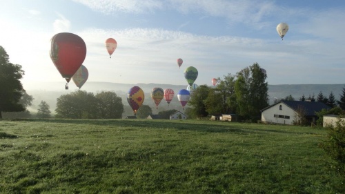 Montgolfières a Vielsalm: un concours international pour montgolfières. Vol du matin au-dessus de Priesmont, un petit village à coté de Vielsalm. On tient a remercier la famille Lannoy-Micha, pour les belles photos.