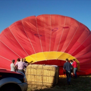Vol en ballon dans la région de Bastogne. En partant à côté du Bois de Longchamps, la montgolfière a fait l'atterrissage à Hardigny.