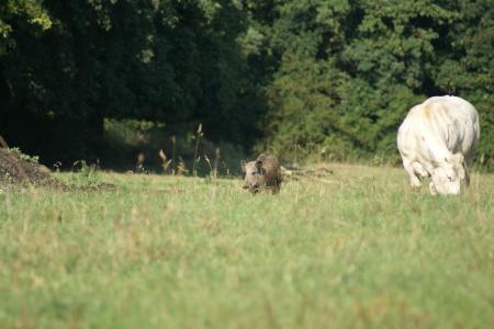 En plein milieu des champs, aux alentours de « Vielle Leuze », les habitants ont pu remarquer la présence d’un sanglier, depuis quelques jours, dans un troupeau de vaches. Ni elles ni lui n’ont l’air perturbé par leur présence respective.