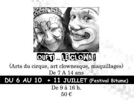DU 6 AU 10 JUILLET (+ 11 juillet au Festival Bitume à Vielsalm) : journée : "Oufti le clown !" (arts du cirque, art clownesque) de 7 à 14 ans