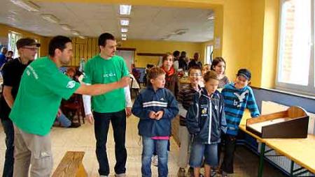 Le dimanche 21 juin s’est donc tenue l’édition 2009 du Festival de l’Amitié Mini à la salle des Jeunes de Wardin. Le matin, une quarantaine d’adultes et une trentaine d’enfants n’ont pas hésité à braver la pluie pour participer à la marche-quiz à travers les rues et sentiers aux alentours du village. Les participants furent ensuite 120 à déguster tous ensemble le traditionnel jambon à la broche et crudités sur le temps de midi. Une remise des prix, rehaussée de la présence de Monsieur le député-bourgmestre Philippe Collard, a ensuite récompensé l’équipe la mieux représentée en nombre (les Jaunes), l’équipe ayant obtenu le meilleur résultat (les Bleus), ainsi que les trois adultes et trois enfants ayant récolté le plus de points individuellement. Une bonne moitié des participants a choisi de passer le reste de la journée à profiter des jeux préparés par la Jeune Chambre. Précisons que les tournois de mijole et de fléchettes ont suscité un très vif engouement, notamment auprès des enfants.