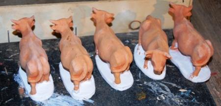 Au départ d’un modèle en terre cuite, il s’investit à lui donner vie en le peignant avec patience et minutie.
