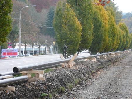Depuis 2006, le démontage de la voie entre Trois-Ponts et Sourbrodt est terminé. La mise en place d’un RaveL sur l’assiette de celle-ci est envisagée mais le permis pour le tronçon entre Trois-Ponts et Waimes est actuellement retardé pour non-respect des délais. Déception car ce RaveL est un beau projet et qu'il est voulu par tous les habitants et toutes les communes. De plus, l'ALG ( Association liégeoise de gaz ) va en effet profiter de l'ancienne ligne ferroviaire N 45 pour prolonger une conduite de gaz à moyenne pression de Trois-Ponts jusqu'au zoning de Malmedy d’abord puis de Waimes ensuite. Le gaz à Malmedy, on en parle depuis des années et surtout depuis que l'avenue des Alliés a été rénovée et qu'une conduite de gaz y a été posée. L’enfouissement de ces tuyaux gainés sur la voie désaffectée va bon train de sorte que les responsables de l’ALG annoncent un raccordement des papeteries malmédiennes pour la fin de cette année tandis que les particuliers troispontois, stavelotains, malmédiens et waimerais devraient attendre 2010. Pour ce qui est du RaveL, les travaux programmés consisteront en l'asphaltage des 22 kilomètres de l'ancienne ligne de chemin de fer de Trois-Ponts à Waimes, le tarmac ayant été choisi comme revêtement afin d'accueillir une plus large gamme d'usagers faibles et notamment les personnes à mobilité réduite. Le MET va aussi profiter de ce délai supplémentaire pour rencontrer les attentes de la DNF en réalisant un relevé de la faune et de la flore aux abords du futur RaveL. ( Photos sur www.ardenneweb.eu )