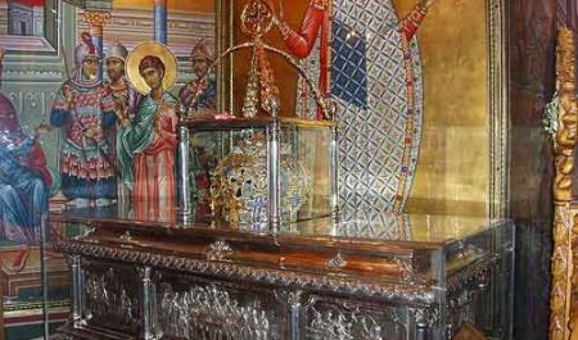 Agios Dimitrios, ouvrage restauré en 1948, dont la forme adopte le plan architectural d’une basilique à cinq nefs. La nef est construite sur des thermes romains et est ornée de mosaïques. La crypte est la partie la plus à l’est des thermes, où fut emprisonné, martyrisé et enterré saint Dimitrios.