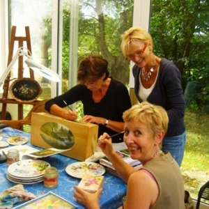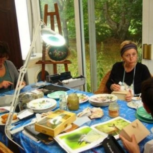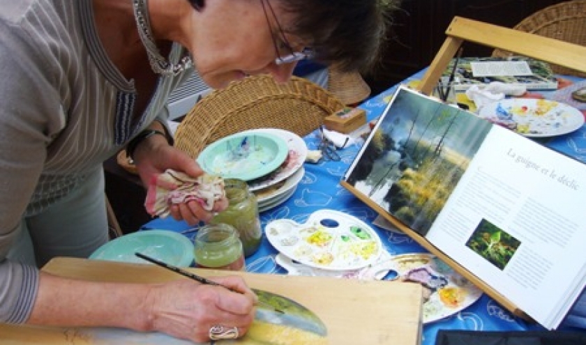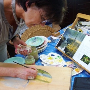 Lors de notre visite, cette artiste nous a fait pénétrer dans son monde merveilleux, « la peinture sur bois ».
