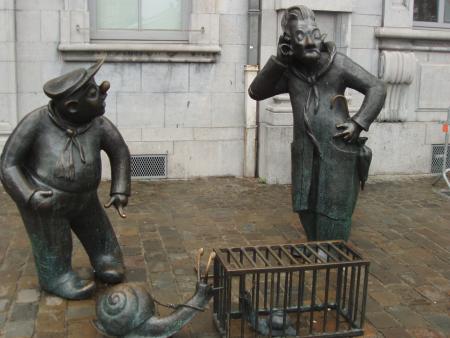 Sur la ravissante place d’Armes, se trouve la Bourse de Commerce, construite en 1932 en style Renaissance. La statue en bronze représente Jôseph et Franswès –deux chwès namurois et le célèbre escargot de Namur.