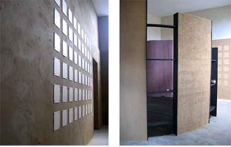 Derrière la façade en bois ébène, spirale encore autour de laquelle s'orchestrent deux espaces d'accueil et d'atelier afin de permettre la rencontre avec les matières de S'HABITER. Des matières de grandes qualités écologiques qu'il s'agisse des argiles, enduits, chaux, pigments, peintures naturelles, lasures et aussi tous ces isolants naturels que sont les roseaux, fibres de bois, laines de mouton, de chanvre, de lin.