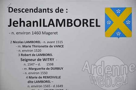 Ce dimanche 27 juin 2010, tous les Lamboray-Lamborelle descendant d’un même aïeul commun, comme le prouve et démontre notre généalogie, « Jehan Lamborel de Magreux (Mageret) » qui a vécu au 15e siècle (de +/- 1440 à 1500), seront invités à se réunir de 10 h à 18 h à Houffalize au Centre Hôtelier d’ Ol’ Fosse d’Outh.