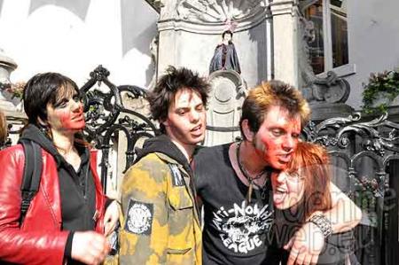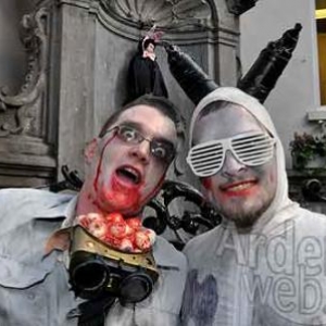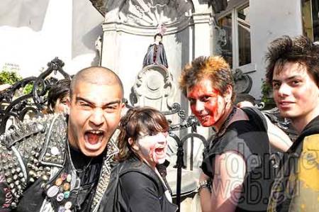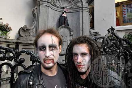 Direction la station de métro Yser pour rejoindre le Mont des Arts et, enfin, le Manneken-Pis. Ou plutôt Draculen-Pis puisque le petit Bruxellois avait revêtu un bel habit rouge et noir, porté depuis le début du Festival. La foule de cette populace mi-macchabée mi-vivante s’est ensuite éparpillée dans les rues de Bruxelles, et de Navarre, et d'ailleurs... pour mieux terroriser la foule tantôt apeurée, tantôt surprise mais souvent amusée.