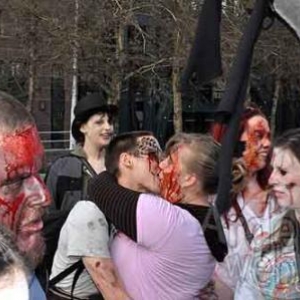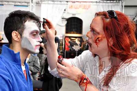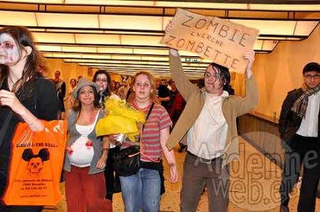 Ce samedi 10 avril 2010 s’est tenu à Bruxelles le 4e Zombie Day, en partenariat avec le Festival du Film Fantastique de Bruxelles. Les futurs zombies ont eu la possibilité de se faire maquiller pour zéro franc zéro centime entre midi et 14h30. C’est au stand Maquillage du Festival que ça se passait. Ils n’étaient ainsi pas moins de 500 à se rassembler à Tour & Taxis, avant un départ groupé.