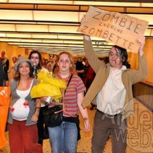 A l'occasion du 28e Festival International du Film Fantastique de Bruxelles 500 zombies ont envahi les rues de Bruxelles. Raphaël Wenric,organisateur de l'événement, vous raconte l’évènement au travers d’une vidéo que nous avons réalisée le jour-même. Déguisés en zombies les participants faisaient peur aux passants du centre ville. Raphaël Wenric a eu l'idée d'organiser cette parade de zombies à Bruxelles en voyant son équivalent à San Francisco. Le BIFFF soutien l’opération en maquillant gratuitement les participants qui dès 14h30 ont envahi le métro, puis la place de l'Albertine, pour finalement arriver à la place de la Monnaie. Les zombies ont salué Manneken Pis, déguisé pour l'occasion en Dracula, tout chantant “Du sang, des boyaux, de la rate et du cerveau ! ". Une vidéo qui ne fera rire que les enfants autant que les acteurs qui parvenaient même à nous faire peur.