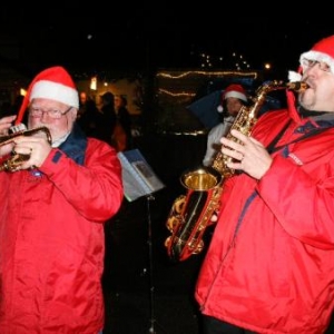 Nous illustrons ce petit article de prises de vues du marché de Noël 2010 : la ville était enneigée, on aurait entendu glisser un cygne. La place blanche devint rouge, quand les sonneurs de trompe du Bien aller égayèrent la réjouissance...