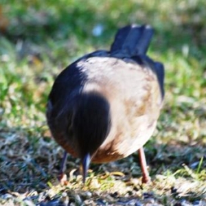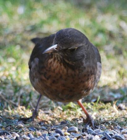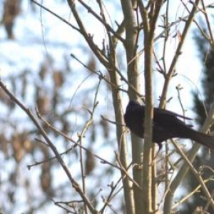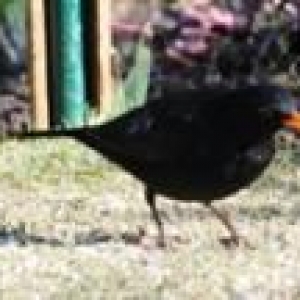 Les merles (M et Mme). Présents toute l’année dans les jardins où ils cherchent des vers.
