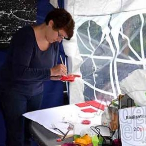 Revient accompagnée de Renée chaque année, tripoteuse aux doigts de fée, exhiber sa pâte en bijoux et joujoux métamorphosée, Evelyne Casagrande.
