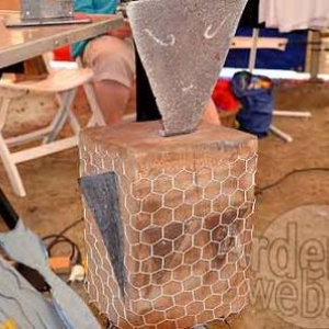 Jacques Droux, fasciné par la rouille et les vieux métaux, cherche et trouve. Le prix spécial Alta Falesia lui sera décerné. Il expose par exemple un corps de femme qui pour être de bois vous aguiche vêtue seulement d’un body en treillis de poulailler plus transparent tu meurs.
