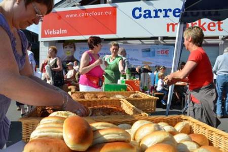 Petit déjeuner : parking du Carrefour Market (sous chapiteau) ou au sein même du magasin, selon la météo, Les Grands Champs 38 à Vielsalm (6690) Départ et arrivée de la balade à la salle des Pîpîres de Neuville, en face de l’église