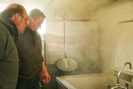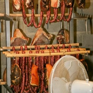 Notre guide nous explique avec enthousiasme le fonctionnement de ses machines, nous emmêne à la cave aérée où les viandes et préparations fumées sèchent, répendant un lourd parfum envoûtant qui nous fait saliver.