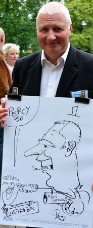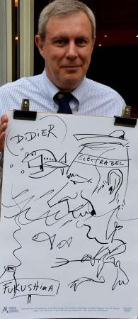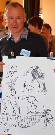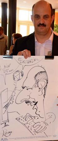 Vendredi 15 juin 2012, Jean-Marie Lesage caricaturait comme chaque année les jubilés et pensionnés de la centrale de Tihange d’Electrabel GDF Suez de 17 à 19h au Château Rorive d'Amay.