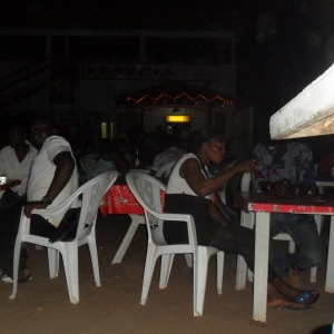 Quand tombe la nuit, dès 18 heures, le long de l’artère « boulevard Jean-Paul II », un marché s’étire sur le trottoir, petits commerces fixes ou ambulants.