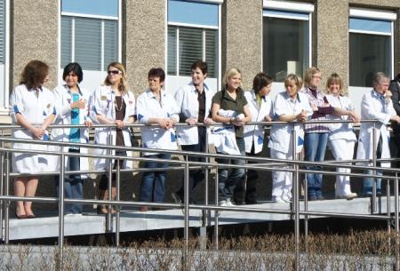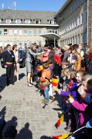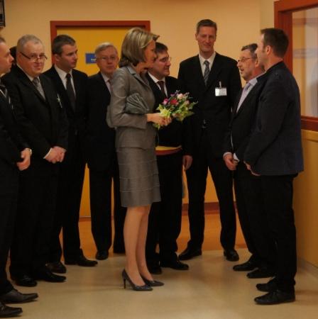 – Pour célébrer le 50ème anniversaire de l’ouverture de la Clinique Reine Astrid ( inauguration le 6 mai 1961 ), les Autorités communales avaient invité une hôte prestigieuse : la Princesse Mathilde. Arrivée à 10 h, la Princesse a été accueillie par M. André Denis, Bourgmestre, et par M. Philippe Lemaire, Directeur de l’établissement. Après la remise des fleurs de bienvenue, les membres du Conseil d’administration lui ont été présentés. Dans la salle de réception, le Bourgmestre a brossé un rapide historique de la Clinique ainsi que rappelé l’importance d’une telle institution en région semi-rurale et à haute fréquentation touristique autant que pourvoyeuse d’emplois ( 305 équivalents temps plein ) Suivait alors la projection d’un court film de présentation de celle-ci. Après signature du Livre d’or, la Princesse était accueillie par Ms Jadoul et Dumoulin, responsables du SUS ( Soins Urgents Spécialisés ), qui lui firent visiter le PIT ( Paramedical Intervention Team ) et son ambulance superéquipée. Sous la conduite de Mme Micha, l’Invitée du jour a rejoint l’hôpital de semaine et a eu l’occasion d’ y rencontrer quelques hospitalisés. Sur le parking de la Clinique, de nombreux écoliers et habitants de la cité de la Warche, agitant de drapelets aux couleurs nationales, attendaient la sortie de notre Princesse pour lui témoigner leur attachement. Une courte visite mais qui s’est déroulée sous un soleil radieux. A signaler qu’en plus de son anniversaire, la Clinique Reine Astrid vient tout récemment de changer de statut. Elle a désormais celui d'association "Chapitre XII", ce qui signifie que l'établissement a acquis une personnalité juridique propre mais reste public à 100% tout en étant géré, conjointement, par la Ville de Malmedy et son CPAS.