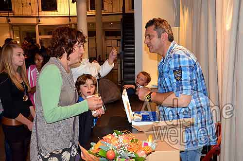 La petite représentation terminée, tout le monde est invité à la cafétéria où, pour une somme modique, chacun peut boire et déguster des pizzas préparées par un commerçant ambulant à la sortie du centre culturel. Deux magiciens bien connus à Rochefort, Monte Cristo et Ben proposaient des tours de magie aux différentes tables.