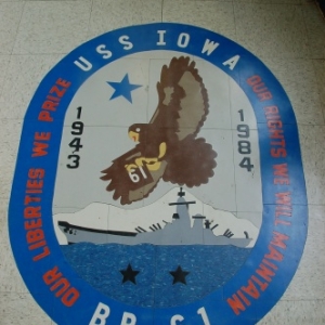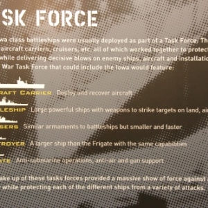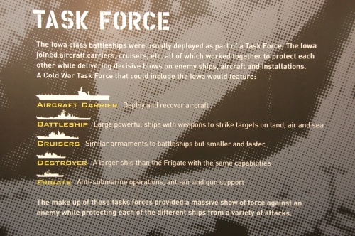 Un peu d'histoire: c'est le bâtiment qui porte le nom de sa classe (en effet la classe Iowa concerne au moins 6 navires: l'USS Iowa, l'USS Missouri, l'USS New Jersey, l'USS Wisconsin, l'USS Illinois, l'USS Kentucky et l'USS Arizona). L'USS Iowa servit au président Roosevelt pour aller à Yalta afin de rencontrer Staline et Churchill (avant son transfert en avion), le bateau fut créé en 1943, prit part à des combats dans la flotte du Pacifique en 1944. Il participa à la guerre de Corée. Il fut retiré du service en 1958 mais réintégré et modernisé dans les années 1980 pour atteindre les standards d'armement de l'époque dans le cadre d'exercices navals de l'OTAN.