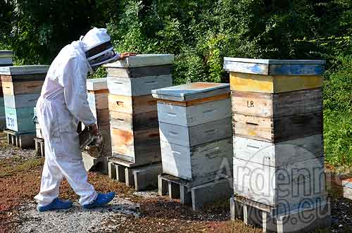 Il a conscience de participer lui aussi au sauvetage de l’environnement, notre apiculteur chevalier blanc d’une épopée contemporaine. Servi par des millions d’abeilles inféodées à des centaines de reines, casernées dans près de 800 ruches. Ses soldats ailés sanglés dans une gaine de lamelles en anneaux ont pour les spécialistes le nom de Buckfast, «Buckies» pour les Amerloques.